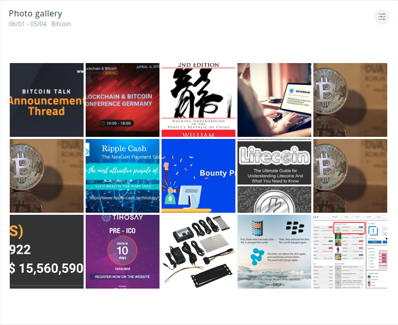 See all the images, that appeared on the web when your brand has been mentioned, gathered in one place. Simply customise your dashboard by adding the Photo gallery widget (available under Mentions category).