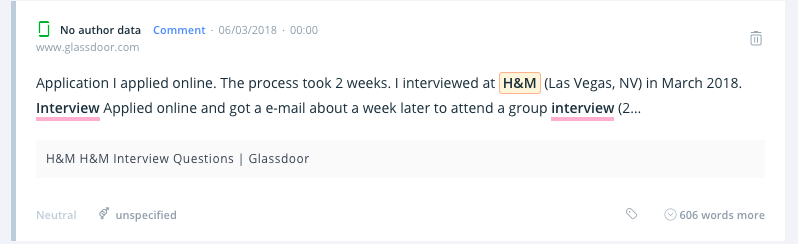Third usage – candidate experience. More and more companies are measuring what candidates are saying about their recruitment process for example by dedicated questionnaires. How about monitoring their spontaneous opinions? Properly set project and alerts will help in catching those mentions.
