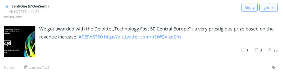 Rádi bychom vám připomněli, že SentiOne může monitorovat zmínky napsané v několika jazycích. Pokud váháte, zdali používat multimarket dashboardy, protože neznáte ostatní jazyky, jednoduše vyzkoušejte funkci překladače.