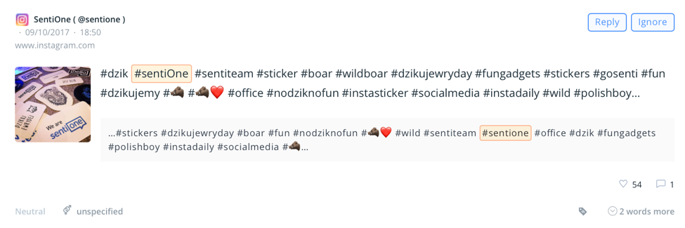 Rozpoznání reakcí na Facebooku není všechno. SentiOne má mnoho funkcí, které vám pomohou porozumět webu. Na Instagramu sbíráme nejenom komentáře, ale také srdíčka z každé nahrané fotky.