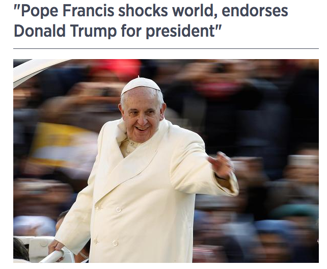Druhou rovinou je politická motivace, kdy lidé sami šíří určité politicky zabarvené zprávy a virálně se tak sami ovlivňují navzájem. Ne třeba dodávat, že Donald Trump svojí prezidentskou social media kampaní povznesl celé téma fake news do výšin. Jako příklad si můžeme uvést zprávu, že Papež schvaluje Donalda Trumpa jako prezidenta.