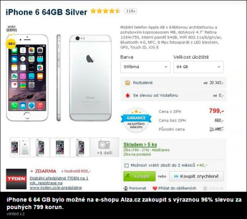 Příklad jednoho článku s 805-ti komentáři: Bude muset Alza dodat iPhony za 800 korun? Zákazníci se rozhodli soudit