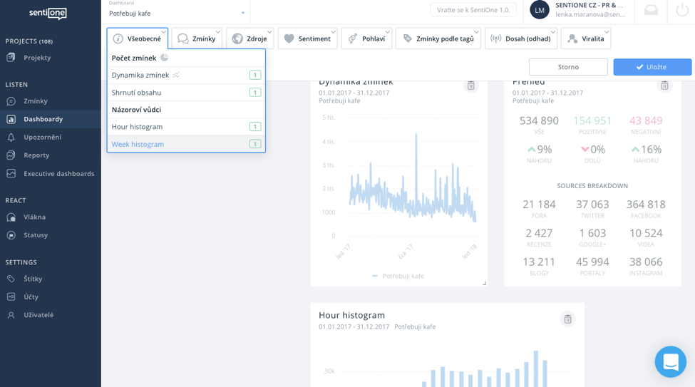 Jak vytvořit Week Histogram ve vašem panelu SentiOne?