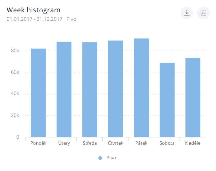 Stejně tak jako graduje postupně káva, nemůžeme opomenout náš český národní nápoj, náš tekutý chléb náš zlatý mok – pivo! Zajímavostí je, že slovo pivo Češi zmiňují v průběhu týdne každý všední den naprosto nejvíce, kdy pátek je dnem, který stupňování konverzace vrcholí. Ale o víkendu jeho zmiňování razantně klesne. Očividně je v České republice pivo zejména popracovní záležitostí.