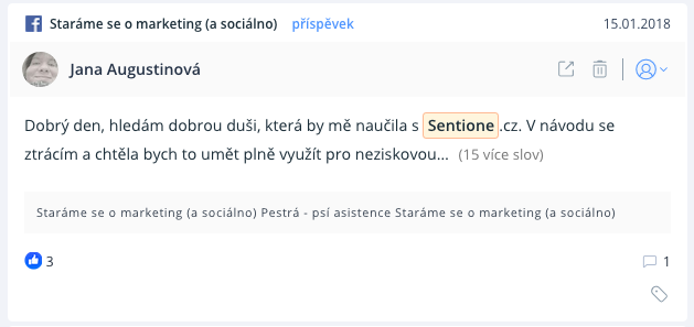 Také můžeme analyzovat sentiment zmínek, a tím tak určit oblíbenost kampaní či zkontrolovat jejich dosah.
