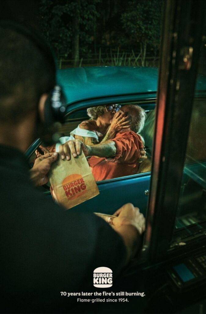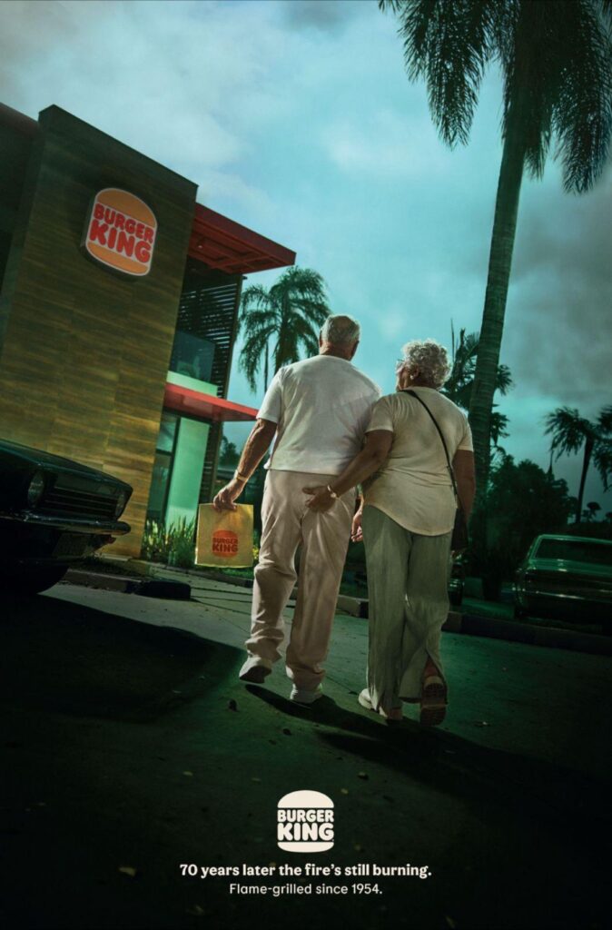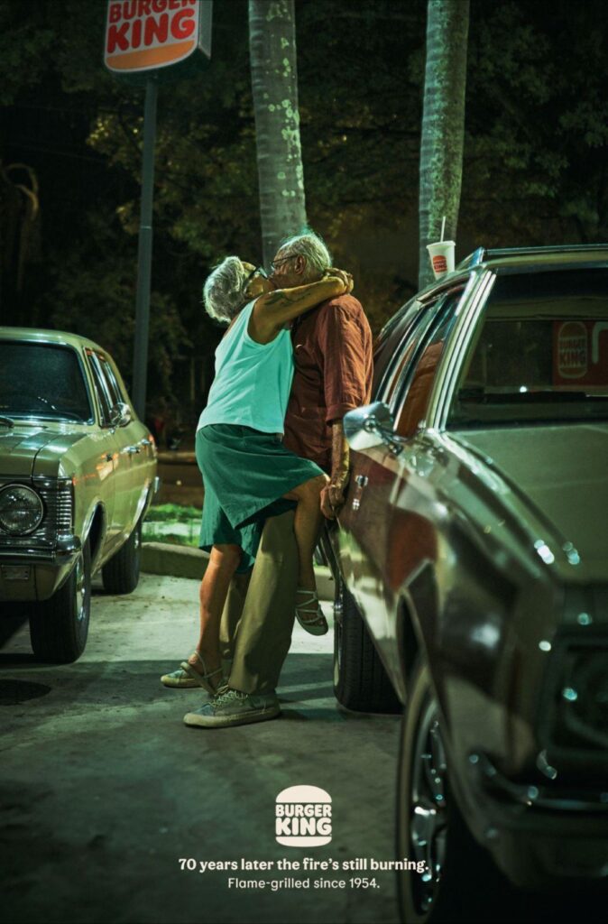 Podría haber sido una simple campaña llena de autocomplacencia para celebrar los 70 años en el mercado. Burger King, sin embargo, fue un paso más allá. No sólo utilizó a una pareja de 70 años en su anuncio de aniversario, sino que apeló a cierto tabú: su vida emocional y sexual. Los protagonistas fueron representados como una pareja de enamorados que se mostraban afecto (no sólo amor, sino también lujuria) el uno al otro en un espacio público.