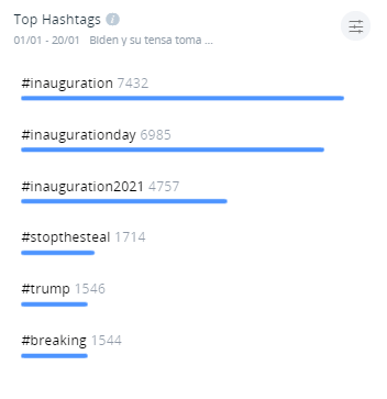 Las etiquetas o hashtags fueron #Inauguration, #InaugurationDay, #Inauguration2021, #StopTheSteal, #Trump y #Breaking.