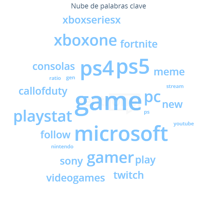 Las palabras clave y los hashtags que predominaron fueron “game”, “Microsoft”, “ps4”, “ps5” y “playstation”, así como #Xbox, #gaming, #gamer, #xboxone, #playstation y #ps4.