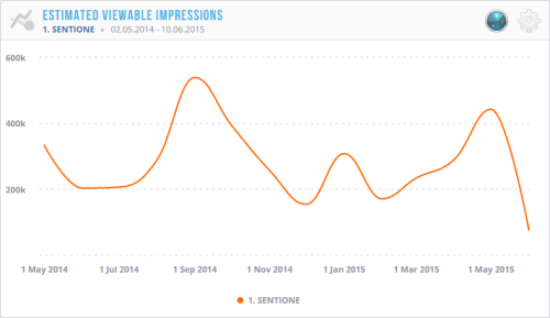• Estimated viewable impressions (line chart) – the line chart shows the change of total estimated views in time.