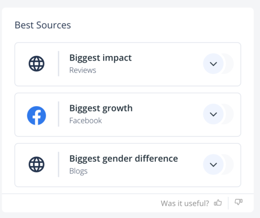 One of the critical updates we have introduced in the first quarter is the addition of new insights, precisely the “Best Sources” and “Authors” widgets. With the “Best Sources” insight, you can discover the best-performing sources rated in three categories: reach, sentiment, and gender share.