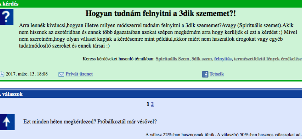 Természetesen a fórum profiljából fakadóan pont annyiféle kérdés van fent, ahányféle ember. Ami figyelmet követel az a megdöbbentő trend, hogy a szépségtippektől kezdve egészen a depresszióig vagy akár a bántalmazásig húzódik a tartalmak íve.