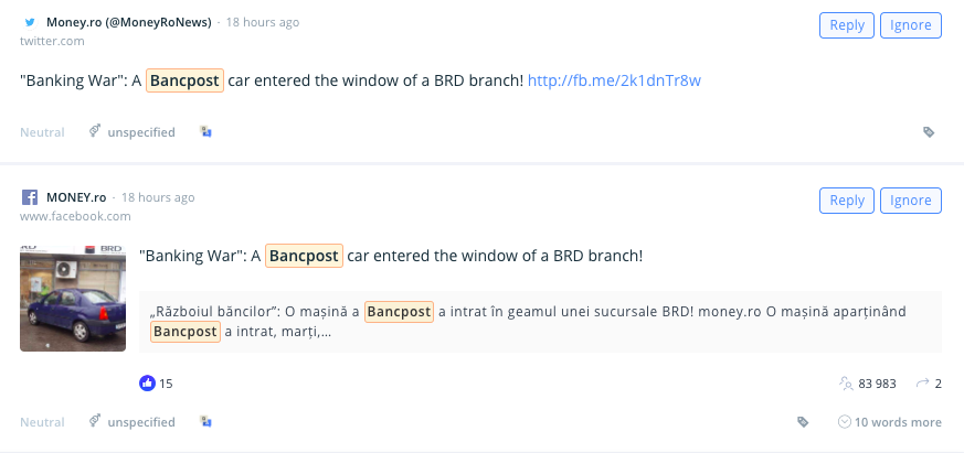 Alább például egy teljesen random, de annál kritikusabb online krízishelyzet mintapéldája, ami a bankszektort érintette Romániában. Egy Bancpost-os munkatárs véletlenül kocsival beleszállt egy kirakatba. A konkurens cég (BRD) fiókjának kirakatába…