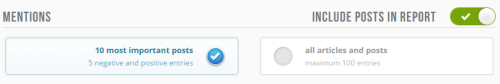 Your report can contain mentions acquired by SentiOne – decide if you want to have 10 most important posts or all of them (up to 100 results). You can also exclude the posts from your report.