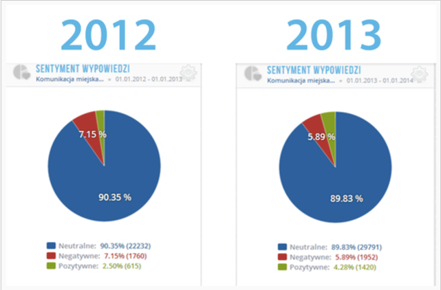Słuchanie i włączanie się urzędu do dyskusji dotyczącej “komunikacji miejskiej”, zaowocowało wzrostem komentarzy pozytywnych na ten temat a co istotniejsze spadkiem negatywnych opinii.