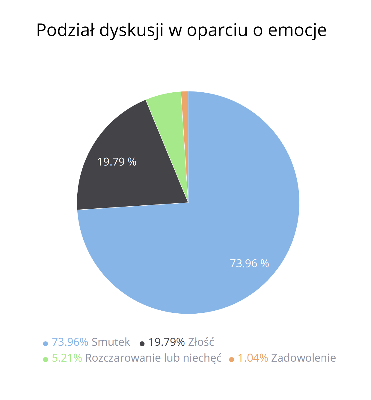 • Dominującą emocją był smutek (73%) następnie złość (19%)