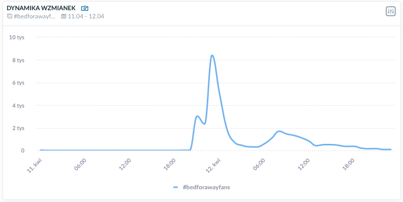 #bedforawayfans – dynamika wzmianek, ujęcie godzinowe
