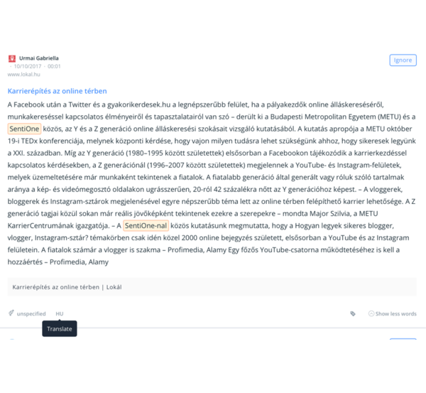 Warto w tym miejscu wspomnieć o możliwości monitorowania kilku rynków w jednym projekcie. Jeśli na przeszkodzie stoi tylko brak znajomości obcego języka, przypominamy! W SentiOne mamy, dostępną dla wszystkich użytkowników posiadających dostęp do więcej niż jednego języka monitorowania, funkcję automatycznego tłumaczenia wzmianek.