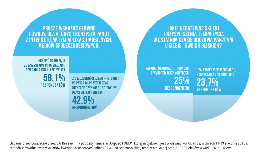 Inne źródło – Deloitte – mówi o tym, że syndrom ten dotyka co trzeciego Brytyjczyka. Pozostając jednak przy rodzimych statystykach, skupmy się na wynikach badania SW Research, przeprowadzonym na potrzeby kampanii “Odpuść FOMO” w 2016 roku.