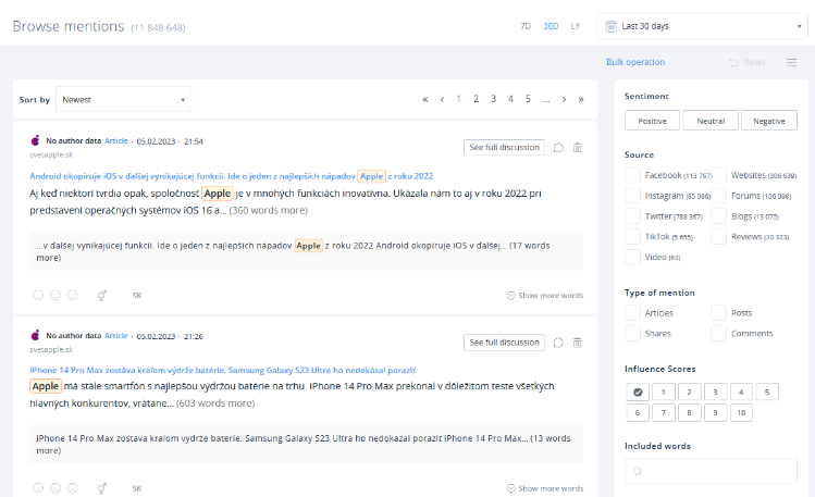 To jednak nie wszystko — w końcu SentiOne Listen dysponuje potęgą sztucznej inteligencji. Nasz autorski silnik NLU ma w zanadrzu kilka bardzo praktycznych trików. Jednym z nich jest rozpoznawanie języka. Chcesz wiedzieć, co o Twojej marce sądzą ludzie w Polsce? Wystarczy, że wybierzesz opcję wyświetlania wzmianek napisanych po polsku.