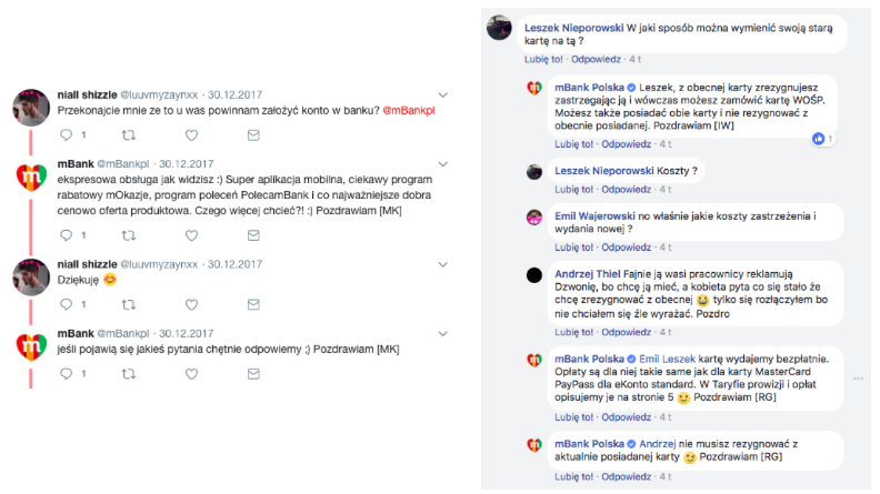 Odpowiadanie na wzmianki w różnych kanałach z poziomu jednego narzędzia, z grupowaniem dyskusji i przydzielaniem wątków odpowiednim zespołom to idealne rozwiązanie dla obsługi klienta na prawdziwie masową skalę. Powyżej przykład wykorzystania takiego potencjału przez mBank.