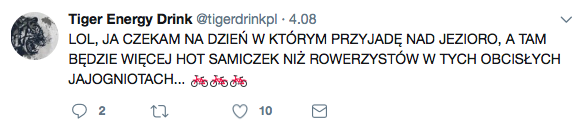 Wypowiedzi nacechowane emocjonalnie, zawierające słowo “Tiger” w zawężeniu do napoju energetycznego w dniach 9-10.08. Źródło: SentiOne