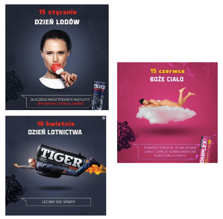 To wszystko efekt strategii komunikacyjnej marki, która miała szokować, oburzać i przez brak pokory trafiać do grupy docelowej. Prowadzony na Instagramie kalendarz przedstawiał każdy dzień roku w formie podobnych grafik, w tej samej konwencji pozostawała pisana caps lockiem komunikacja na Twitterze, wiele mówiąca o samej marce: