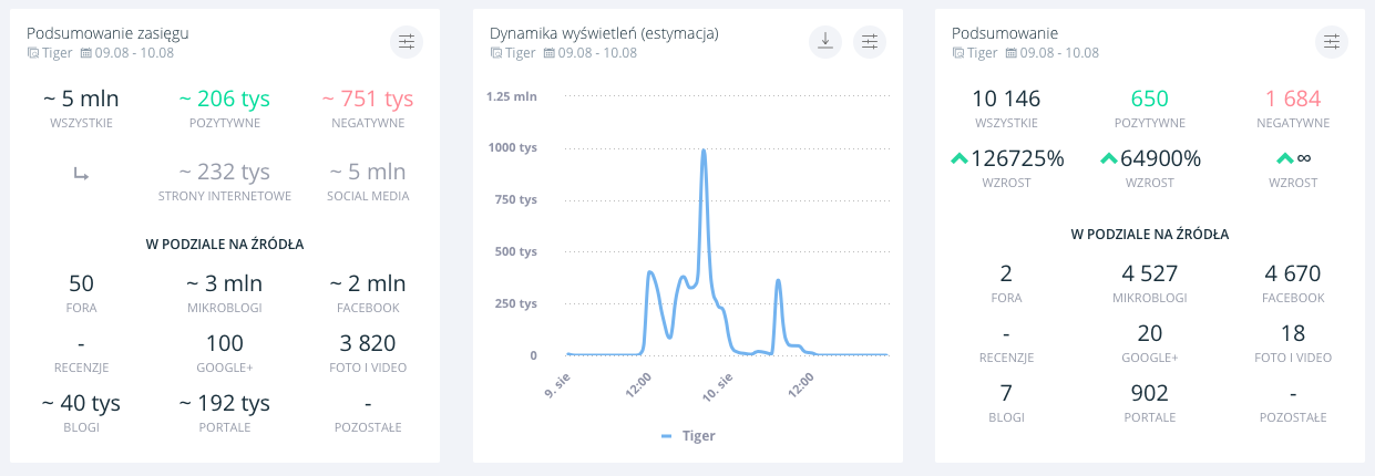 Liczby z systemu SentiOne są dla Tigera bezlitosne –  w ciągu 24 godzin cała sytuacja dotarła do pięciu milionów internautów. Na temat marki wzmiankowano ponad 10 tysięcy razy, w zdecydowanej większości – negatywnie.