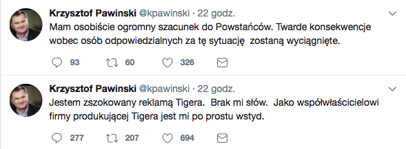 Trzeba przyznać, że przedstawiciele marki zareagowali bardzo szybko, już około 13.00 publikując na Facebooku i Twitterze przeprosiny. Nie była to jednak reakcja udana – przede wszystkim, w takim przypadku wyrażenie skruchy to zdecydowanie za mało – po drugie, nie nauczona doświadczeniem marka nadal starała się pozostać w konwencji NIEPOKORNEGO, CAPSLOCKOWEGO TYGRYSA: