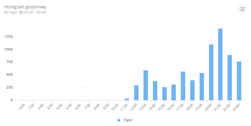 Statystyki zasięgu dla całej dyskusji wokół tematu “Tiger” w dniach 9-10.08. Źródło: Sentione