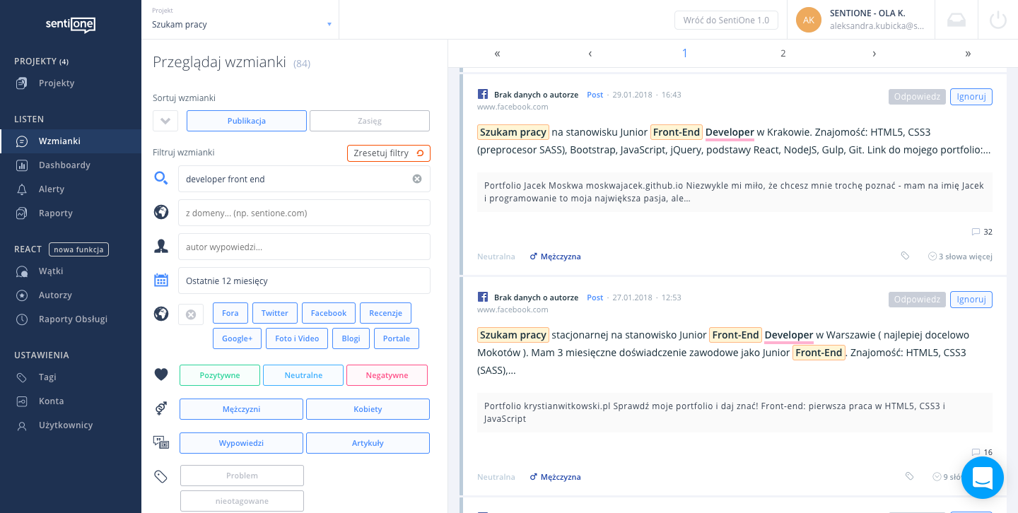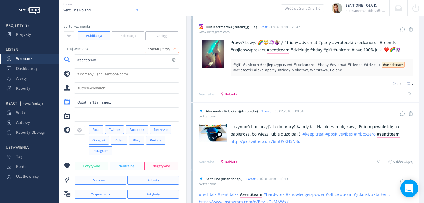 SentiOne oczywiście oferuje wiele innych, przydatnych funkcji i zastosowań. Z pełną listą możliwości naszego narzędzia możesz zapoznać się tutaj.