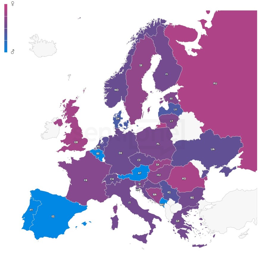 Jak widać, największe zainteresowanie olimpiadą przejawiają Rosjanki i Rumunki, które pisały z hashtagiem #PyeongChang2018 dużo częściej od swoich rodaków płci męskiej. Porównując obydwie mapy można odkryć ciekawą zależność – tam, gdzie olimpiada jest najmniej popularna, piszą głównie panowie (Półwysep Iberyjski). Ze świecą więc szukać wpisów Hiszpanek czy Portugalek!
