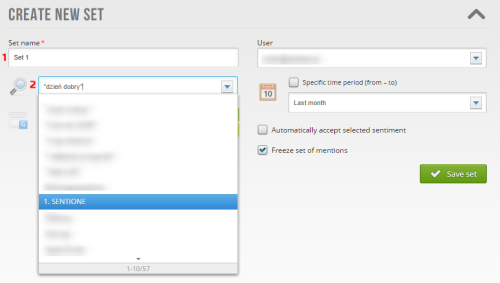 • if you decide to tick the “Freeze set of mentions” option (6), new mentions will not be added to the set after they are detected by SentiOne. To rate mentions detected after creating the set you will have to create a new one.