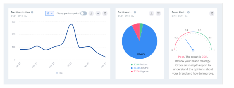 Kia’s vast visibility hides a cold truth: much of the chatter lacks trust.