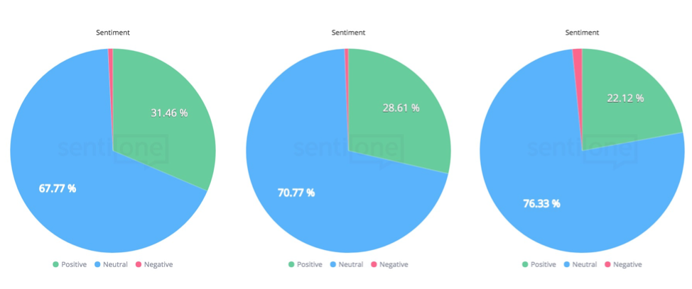 When it comes to the share of voice, Margot Robbie, nominated for her impression of Tonya Harding in “I, Tonya”, takes the lead. However, if we look further and analyze the sentiment of mentions, this is where it gets really interesting: