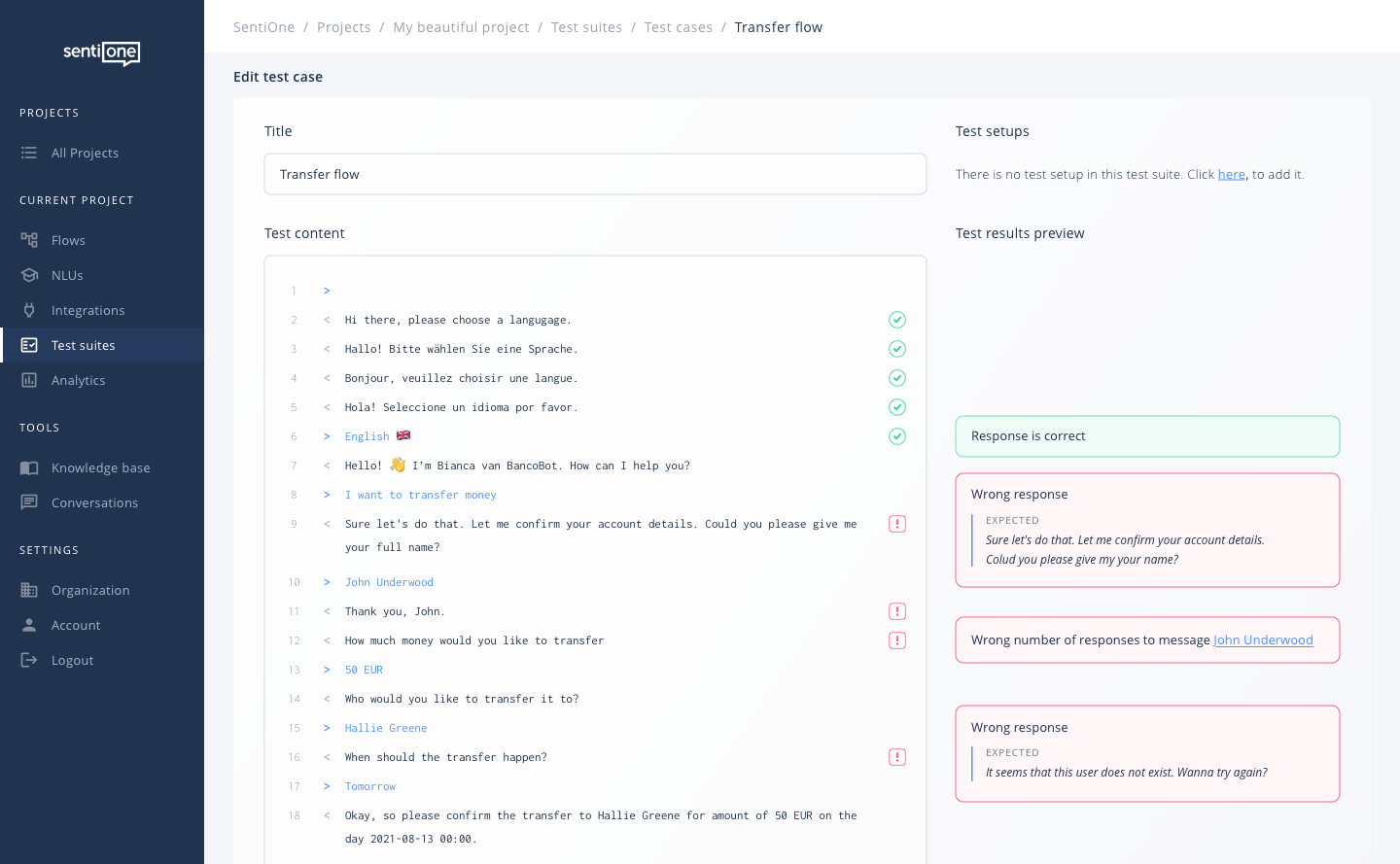 SentiOne Automate hat ein eingebautes Testfeature für Bots, was externe Tools überflüssig macht!