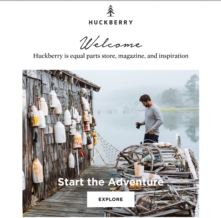 A fragment of a welcome email form Huckberry