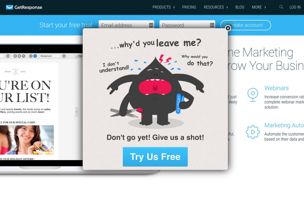 - Exit pop-up with convincing copy – you can get creative here, you haven’t got much to lose after all.