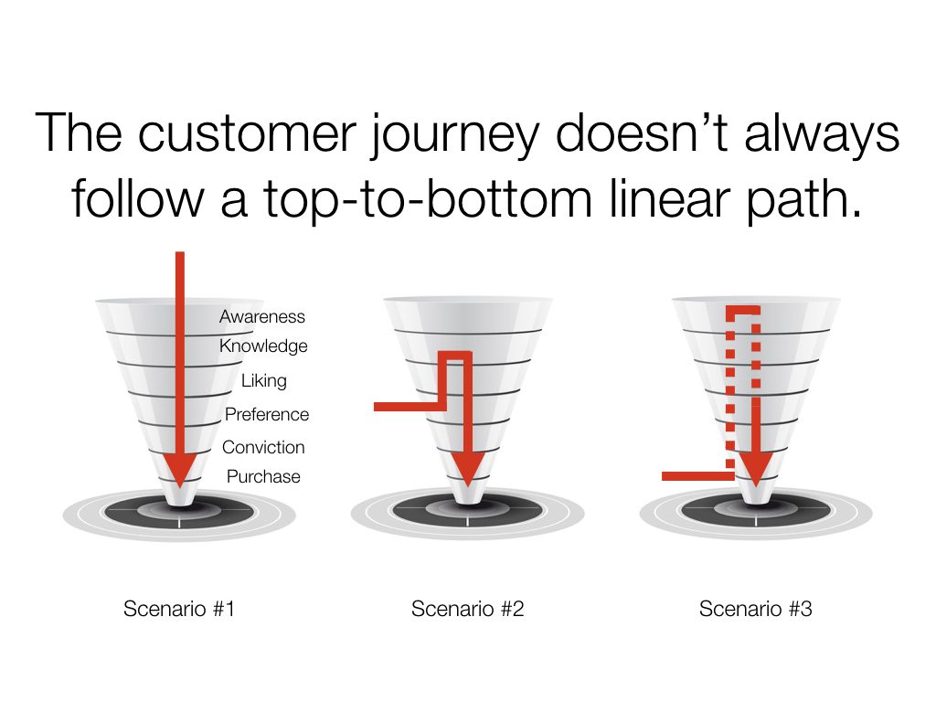 These are just 3 of the nearly infinite number of ways a consumer can move through the sales funnel.